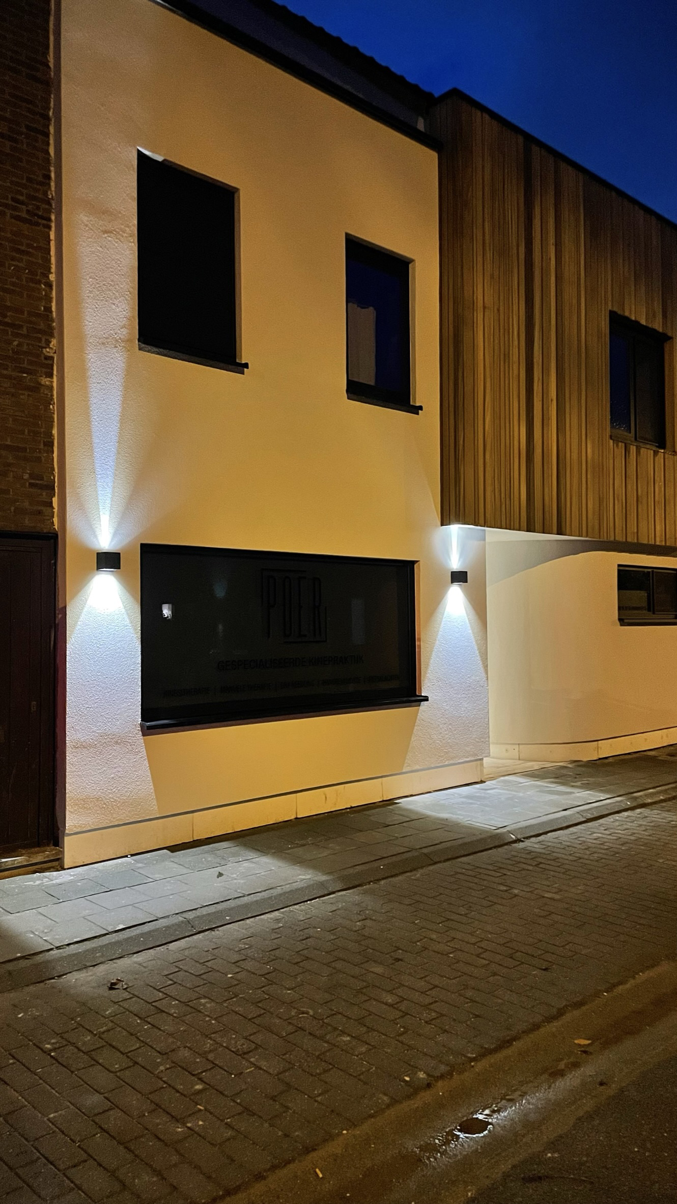 Deze kiné praktijk in Oostkamp werd volledig onder handen genomen door HELEC. Door de installatie van domotica van Carlo Gavazzi werd het mogelijk gemaakt om zowel de verwarming als de verlichting via de smartphone te bedienen. Gebruiksgemak staat hier duidelijk centraal. Alle verlichting die voorzien werd is van SG Lighting.